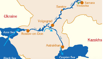 MOSCOW, NIZHNI NOVGOROD, KAZAN, SAMARA, SARATOV, VOLGOGRAD, TOLIATTI, PERMまた黒海(アゾフ海)から流れるDON河でVOLGOGRADに接続可能。